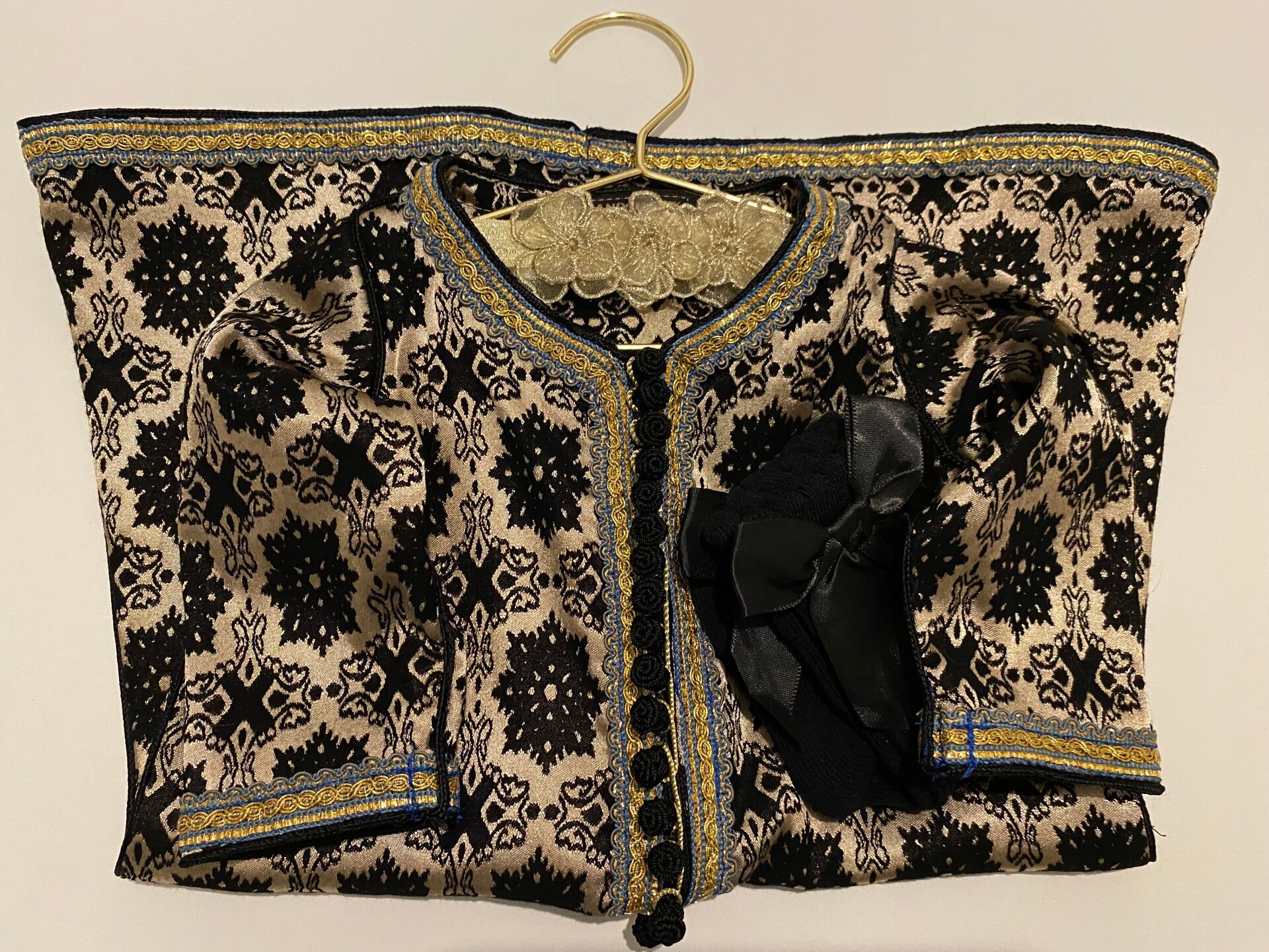 Deze stretchy satijnen kaftan is perfect als kraamkado. Uniek in zijn soort. En verkrijgbaar in maat 62.